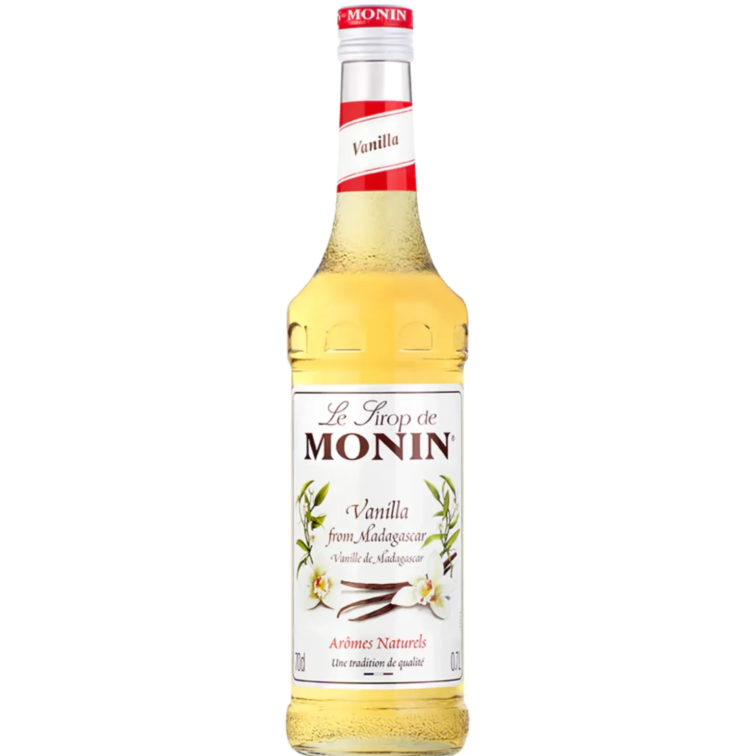 Monin Vanille Siroop: een zachte en romige siroop met de warme, volle smaak van vanille. Deze tijdloze klassieker voegt een subtiele zoetheid toe aan koffie, lattes, milkshakes en cocktails. Gebruik de siroop ook om desserts zoals ijs, taarten en pannenkoeken te verrijken. Met een fles van 70 cl kun je tot 70 drankjes bereiden, perfect voor zowel thuis als professioneel gebruik.