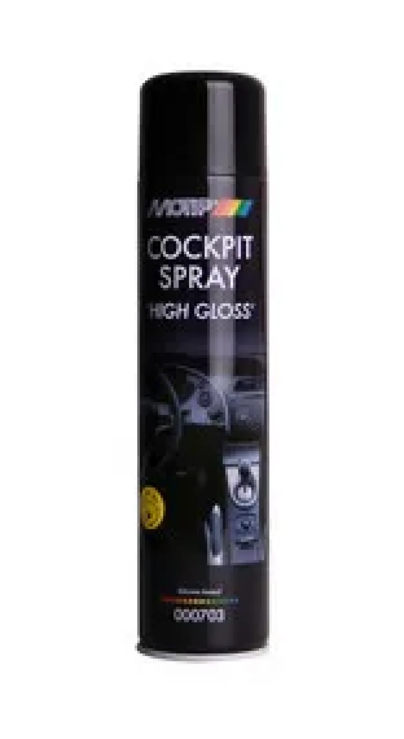 Cockpitspray, met uitstekende reinigende eigenschappen, voor het reinigen, beschermen en verfraaien van het dashboard en overige kunststof onderdelen in de auto. Cockpitspray high gloss heeft een subtiele geur, is vuilafstotend en antistatisch en geeft een duurzame glans. MoTip Car Care Cockpitspray High Gloss bevat siliconen en heeft een 360ø ventiel.