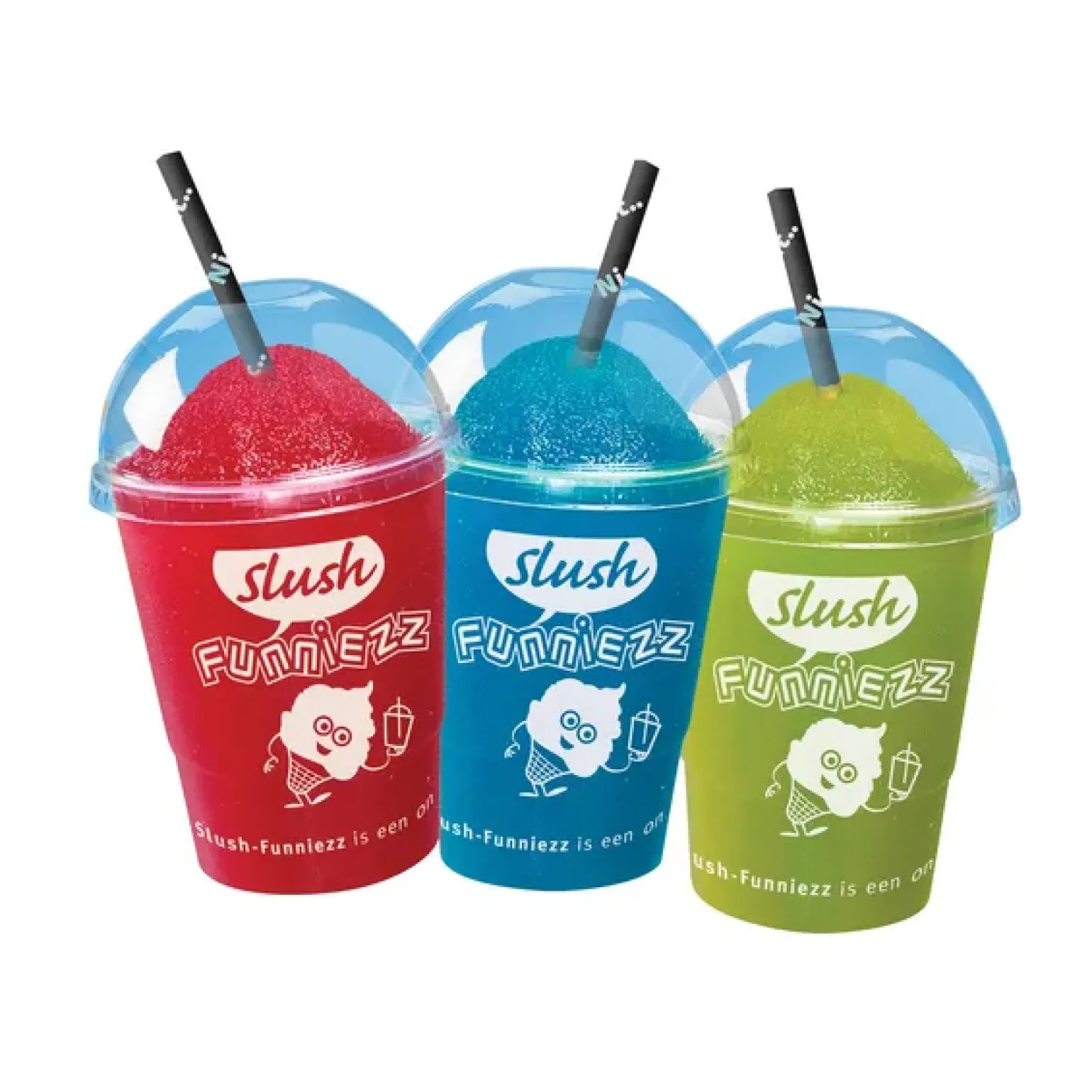 NJOY Slush Funniezz Disposablepakket groot, inhoud 500 slush bekertjes inhoud 250cc 500 rietjes, 500 dekseltjes