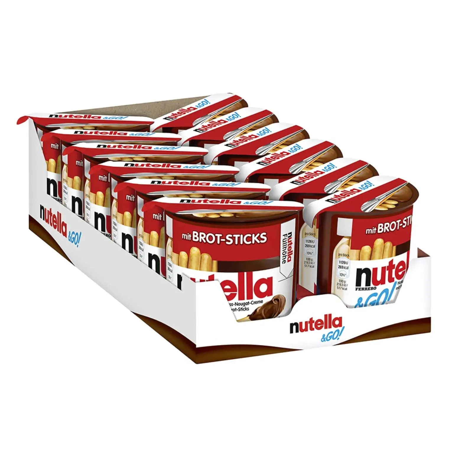 Nutella onderweg als tussendoortje eten? Dan is Nutella & go ideaal. Deze heerlijke chocoladepasta met stengels kan je in deze chocoladepasta dippen. Dit alles in een handige meeneemverpakking. In 1 doos zitten 12 stuks verpakte Nutella & go.