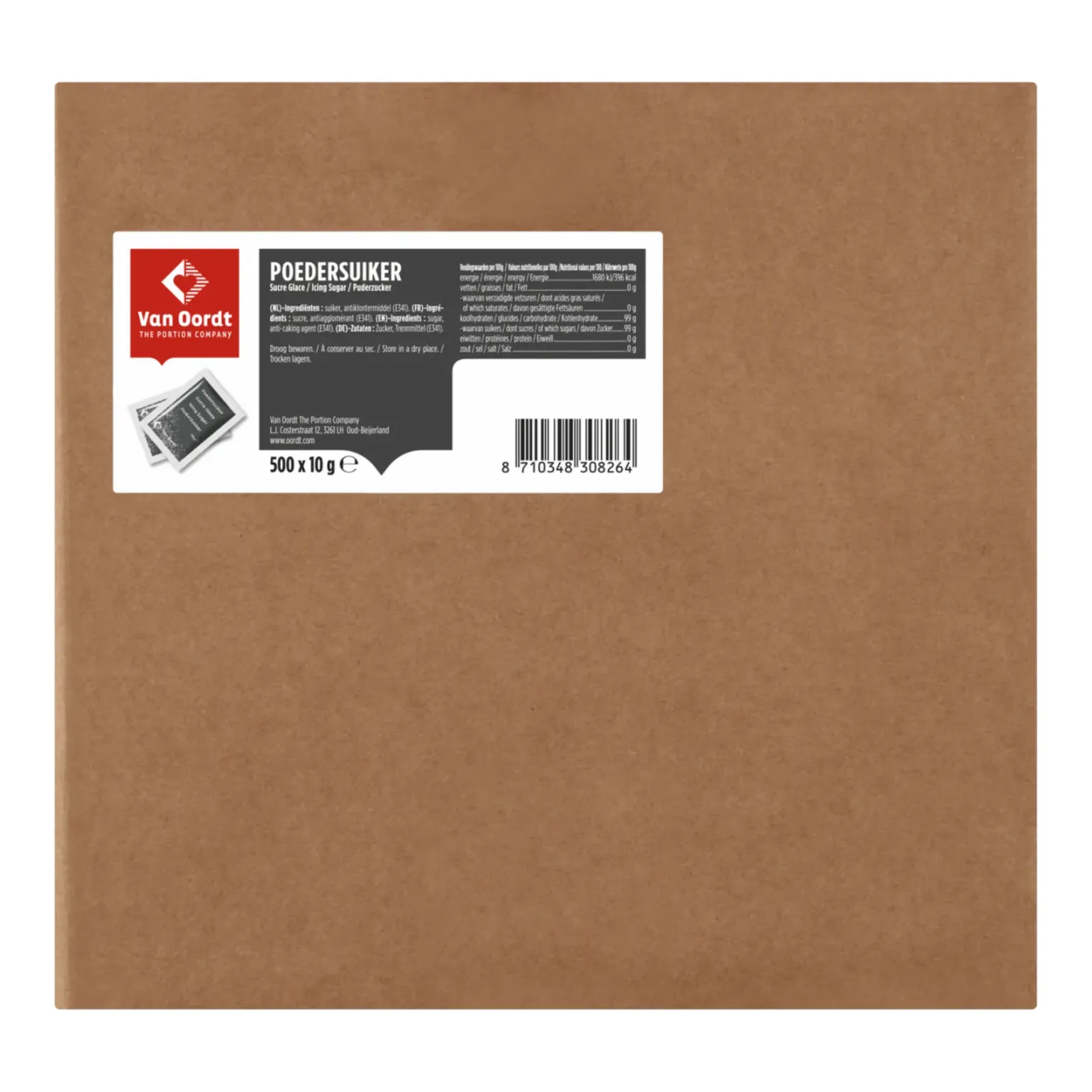 Zakjes poedersuikers koop je voordelig per doos bij groothandel Compliment.nl. Wij verkopen de poedersuiker sachets per doos. In een doos zitten 500 per stuk verpakte zakjes poedersuiker. Een poedersuikerzakje heeft een inhoud van 10 gram. Leverancier van deze poedersuikerzakjes is Van Oordt. Deze zakjes worden door klanten van Compliment.nl veel gebruikt bij pannenkoeken, poffertjes of los meegeleverd bij de feeststol.