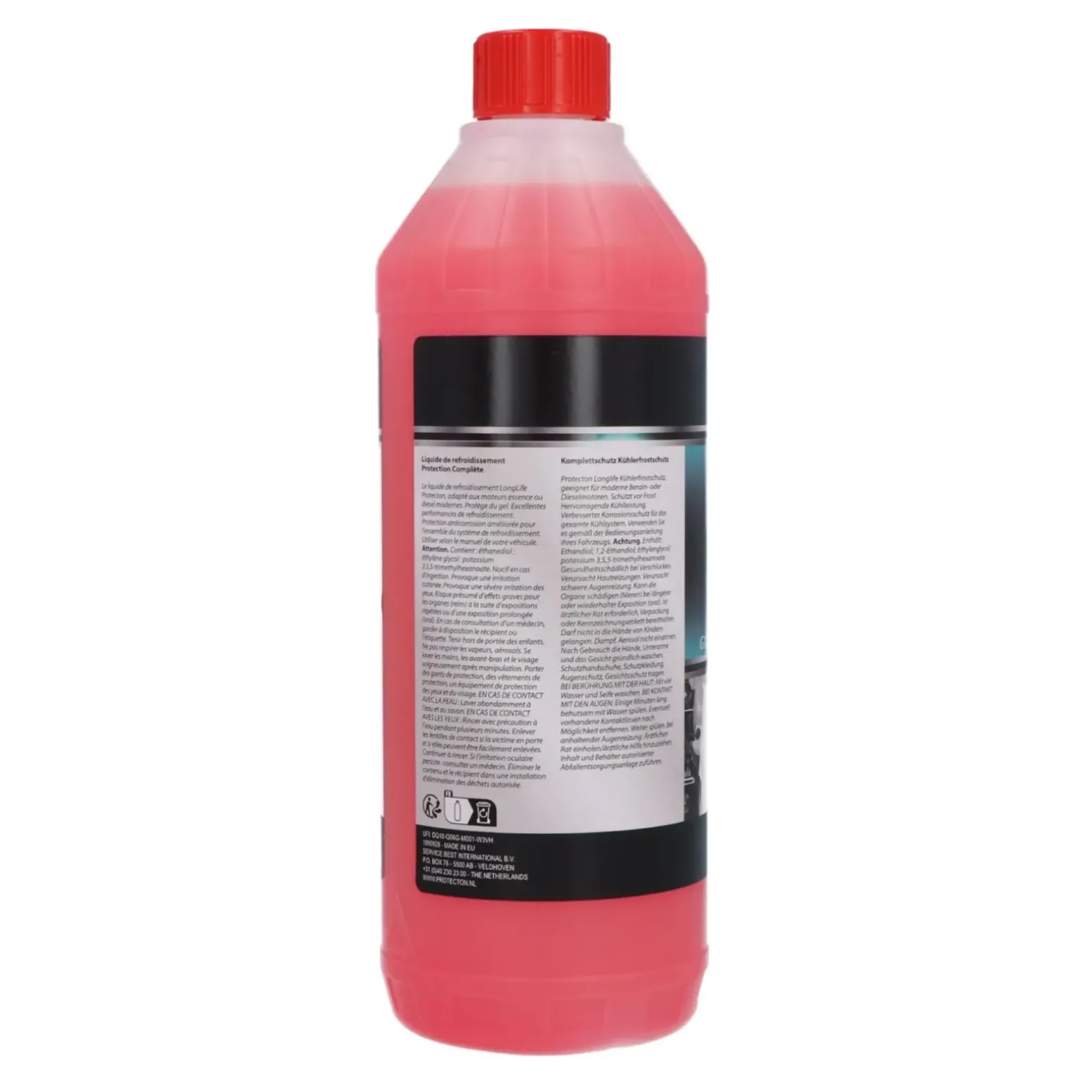 Bij Compliment.nl koop je voordelig Protecton koelvloeistof, een kant en klare koelvloeistof voor direct gebruik die beschermt tot minus 26 graden. Deze hoogwaardige koelvloeistof is geschikt voor het hele jaar en biedt uitstekende bescherming tegen vorst, corrosie en oververhitting. De formule tast geen lak, rubber of metalen onderdelen aan en is veilig voor radiatoren, slangen en afdichtingen. Protecton koelvloeistof voorkomt bovendien kalkafzetting en schuimvorming, waardoor het koelsysteem optimaal blijft functioneren. Deze koelvloeistof is gebaseerd op moderne additieven en bevat ethyleenglycol in combinatie met corrosieremmers voor langdurige bescherming. Het product voldoet aan de G12 en G12+ specificaties en is daardoor geschikt voor veel moderne voertuigen van onder andere Volkswagen, Audi, Seat en Skoda. Dankzij de gebruiksklare samenstelling is mengen met water niet nodig en kun je het direct bijvullen. Protecton staat bekend om betrouwbare auto onderhoudsproducten die bijdragen aan een langere levensduur van je motor. Ideaal voor zowel benzine als dieselmotoren en geschikt voor dagelijks gebruik onder alle weersomstandigheden. Bestel eenvoudig bij Compliment.nl en profiteer van scherpe prijzen en snelle levering.