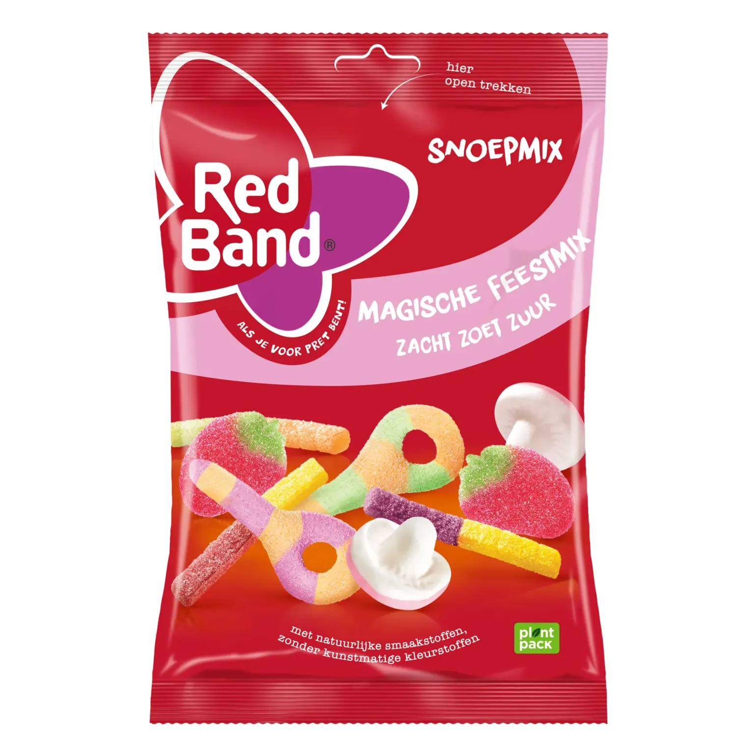 Bij groothandel Compliment.nl koop je voordelig Red Band Magische Mix Zak (12x 305gr). Deze feestelijke snoepmix biedt extra veel snoeppret met een betoverende combinatie van zachte, zoete en zure snoepjes met fruitsmaak. De mix bevat heerlijke aardbeien en speelse fopspenen, perfect voor elke gelegenheid. De snoepjes zijn gemaakt met natuurlijke kleur- en smaakstoffen en zijn glutenvrij. De verpakking is 100% recyclebaar. Houd er rekening mee dat de snoepjes gelatine bevatten, maar er zijn ook vegetarische alternatieven beschikbaar.