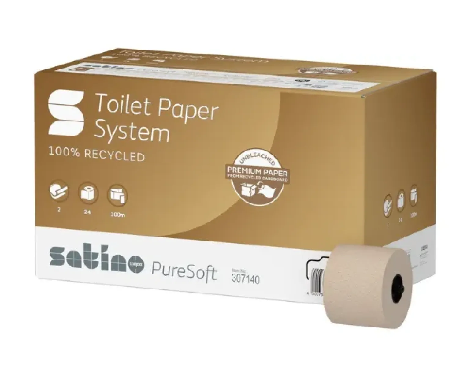 Satino PureSoft is het eerste premium systeem toiletpapier van Satino by WEPA, gemaakt van 100% gerecycled karton van recyclingkwaliteit. Milieuvriendelijkheid en kostenefficiëntie met een systeem: Zachte kwaliteitsproducten die indruk maken met hun hoge absorptievermogen. De systeem jumbo rol zorgt voor een betrouwbare voorraad en biedt lange bijvulintervallen. Wij verkopen de Satino Puresoft toiletpapier per 24. Neem ook een kijkje in ons uitgebreide assortiment.