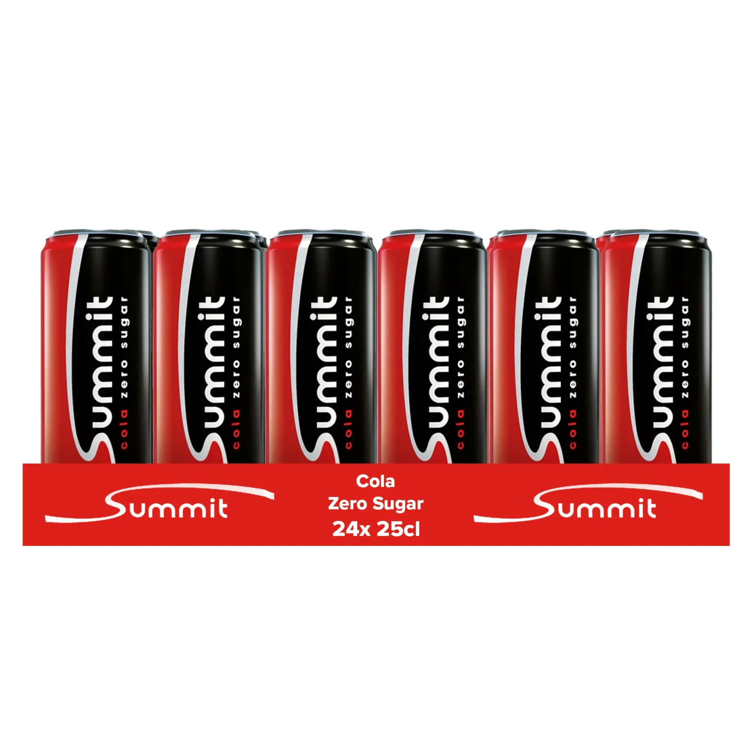 Summit Cola Zero is een limonade met cola smaak en bevat 0% suiker. Deze cola smaakt ijskoud het lekkerst! Verpakt per tray met 24 blikken van elk 25 cl.