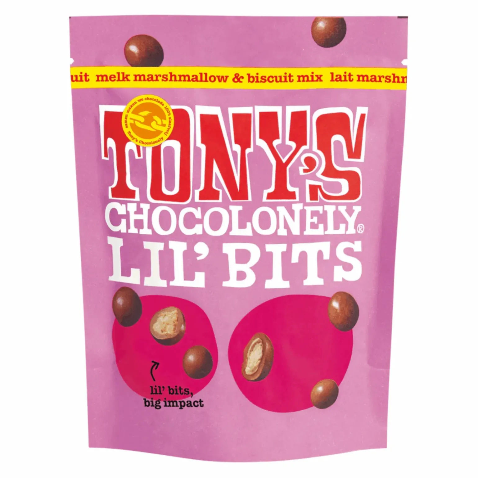 Bij Compliment.nl koop je voordelig Tony’s Chocolonely Lil’ Bits S’Mores (8x 150g) – de perfecte mix van sticky en crunchy! Een knapperig biscuitje met smeuïge marshmallow en een dikke laag romige melkchocolade. Heerlijk om en om te proeven of alles tegelijk voor de ultieme smaakexplosie. Een Lil’ momentje voor jezelf of om te delen met je chocobuddies. Tony’s strijdt tegen uitbuiting in de cacao-industrie met 100% traceerbare cacaobonen en een eerlijke prijs voor cacaoboeren. Bestel nu en geniet van deze onweerstaanbare Lil’ Bits met een missie!