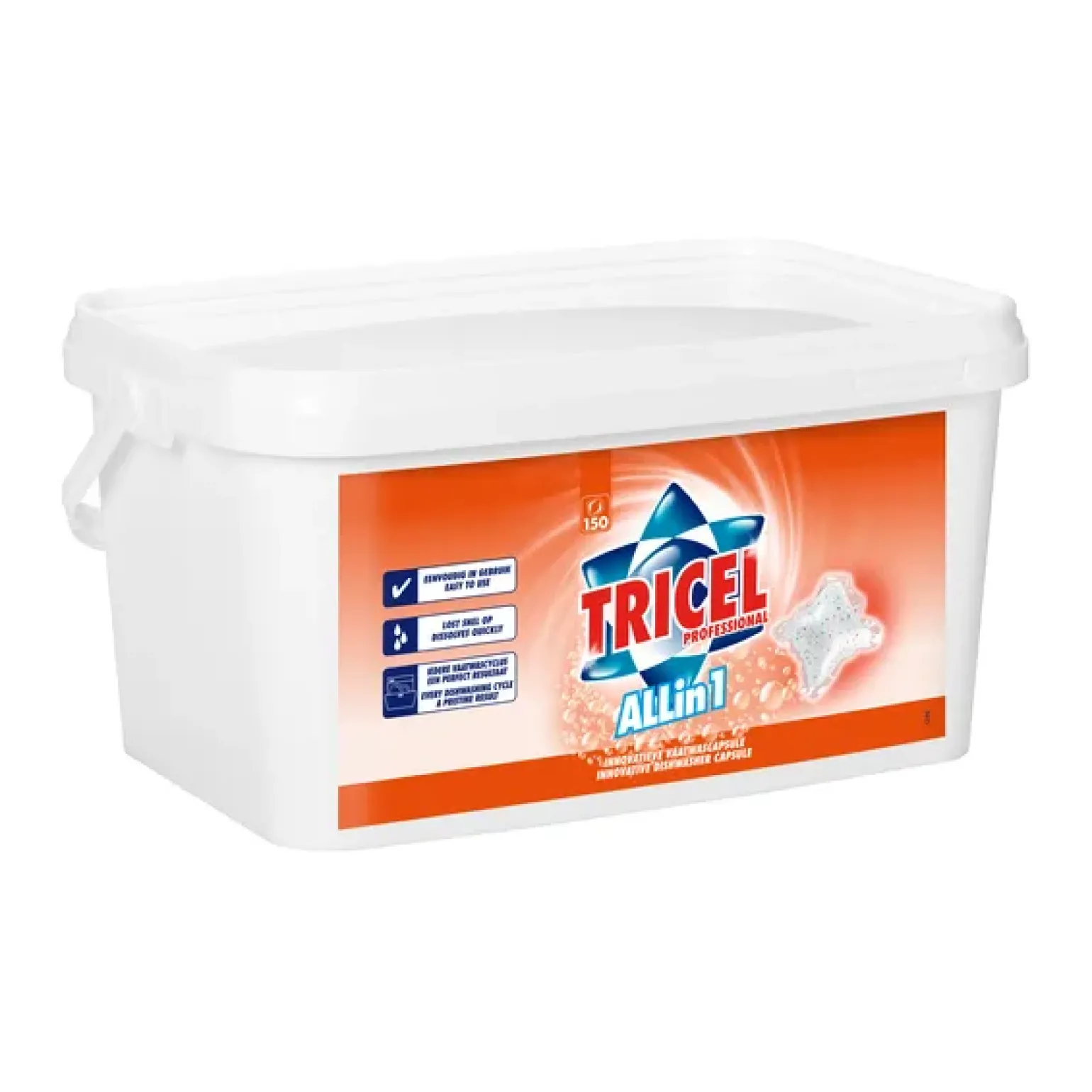 Tricel vaatwaspods zijn krachtige vaatwaspods in een handige hersluitbare emmer. De vaatwasmachine pods zitten in een wateroplosbare folie die zelfs bij lage temperaturen makkelijk en snel oplost. De all in 1 pods van Tricel bevatten naast een krachtig reinigingsmiddel ook zout en glansspoelmiddel. Dit zorgt niet alleen voor een stralend schone vaat, maar ook voor een goed onderhoud van jouw vaatwasmachine.