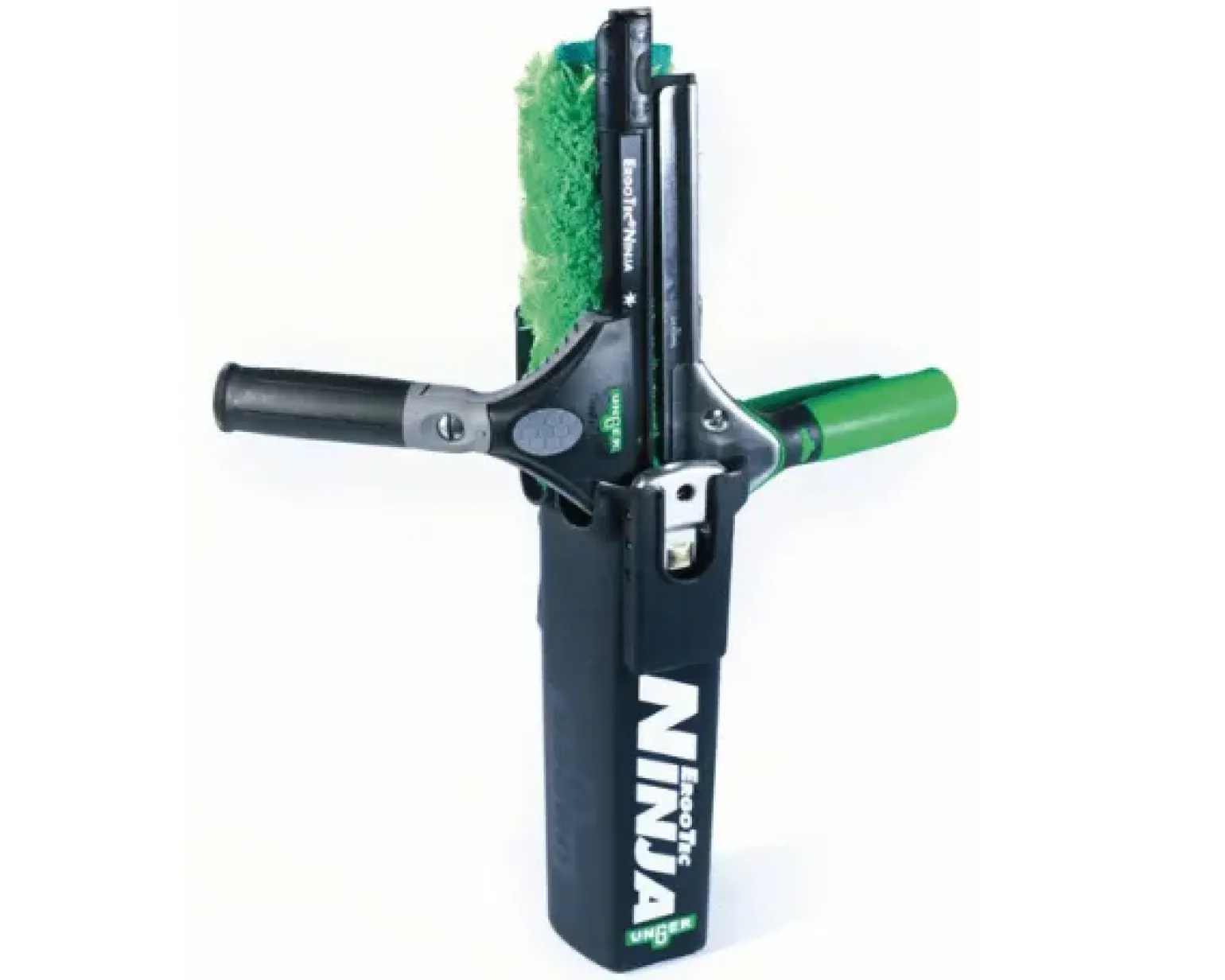 Met deze handige koker heb jij altijd jouw inwasser, wisser en schraper binnen handbereik. De bucket heeft een handige clipsluiting waarmee je hem makkelijk aan je riem bevestigt. Dit kan zowel aan jouw eigen riem als aan de handige . Geschikt voor linkshandigen en rechtshandigen. De koker is onmisbaar voor elke glazenwasser, professioneel of particulier. Op ladders, in kleine ruimtes of wanneer je veel moet lopen: al jouw reinigingsgereedschappen heb je bij de hand met de Unger ninja bucket.