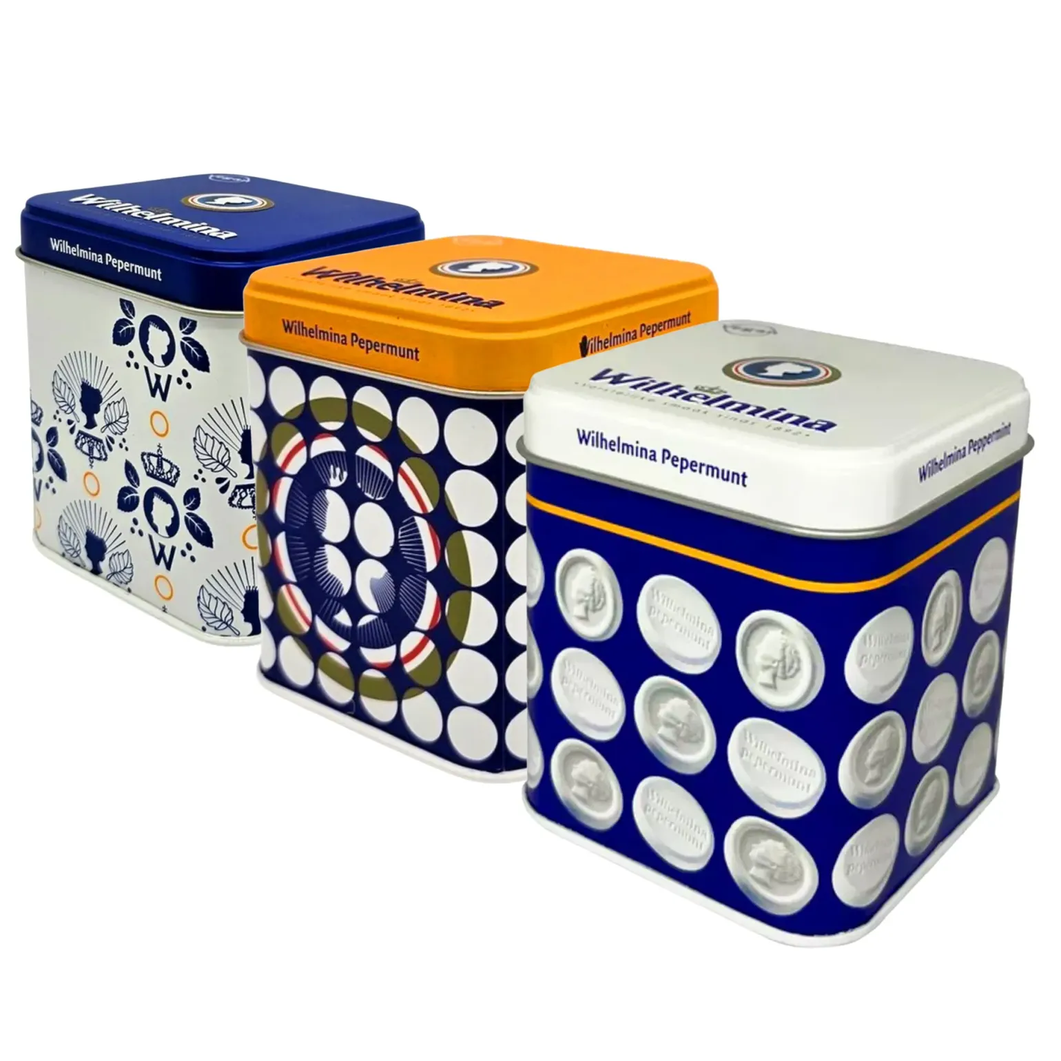 Bij Compliment.nl koop je voordelig het Wilhelmina Pepermunt Blik Vierkant 24 x 100 gram in drie verschillende, stijlvolle uitvoeringen. Deze luxe verzamelblikken zijn gevuld met de iconische Wilhelmina pepermuntjes die al ruim 130 jaar zorgen voor een frisse smaaksensatie met een koninklijk tintje. Elk pepermuntje is voorzien van het portret van koningin Wilhelmina en staat symbool voor traditie en kwaliteit. De blikjes zijn niet alleen praktisch en duurzaam in gebruik, maar ook echte collector’s items en perfect als cadeau of souvenir. Het elegante Nederlandse design maakt ze decoratief en multifunctioneel, want na gebruik zijn ze eenvoudig opnieuw te vullen of te gebruiken als bewaarblik voor kleine spullen. De pepermuntjes hebben een aangename, niet te pittige smaak en zijn sinds kort volledig vegan, waardoor ze voor iedereen geschikt zijn. Met deze grootverpakking van 24 blikjes heb je altijd een royale voorraad voor jezelf of om uit te delen.